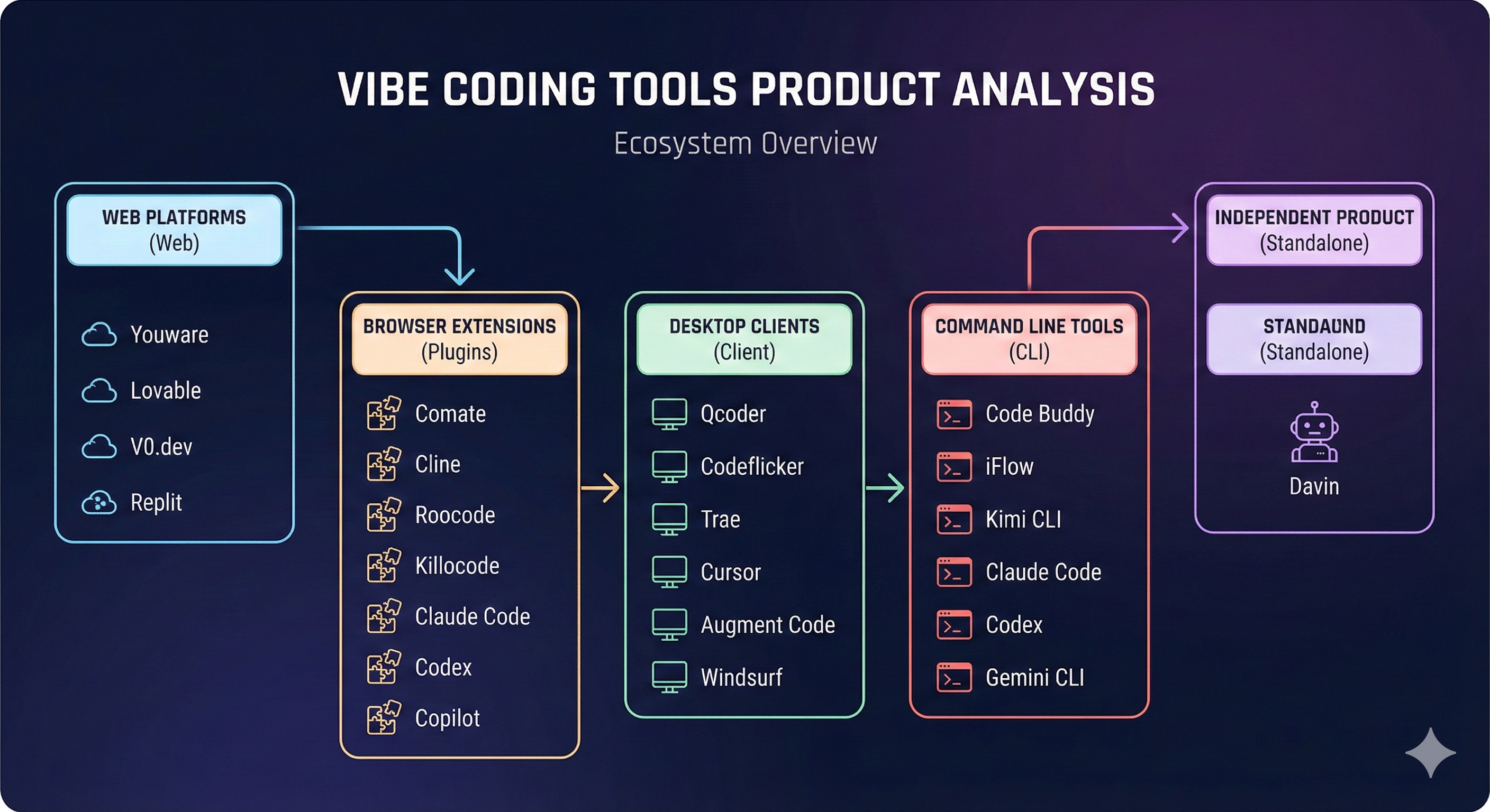 在 Vibe Coding 的早期阶段,我们依赖插件(如 GitHub Copilot)挂载在传统的 VS Code 或 JetBrains 上。但很快,开发者和产品经理们遇到了“玻璃天花板”:
